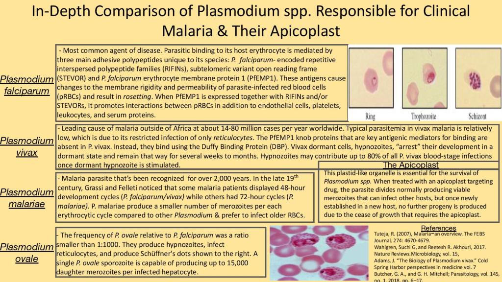 The following poster was created by Hannah Flaherty, a student from the University of New Hampshire completing her B.S. in Biomedical Sciences – Medical Microbiology. Hannah’s project describes the main morphological differences used to differentiate Plasmodium spp.