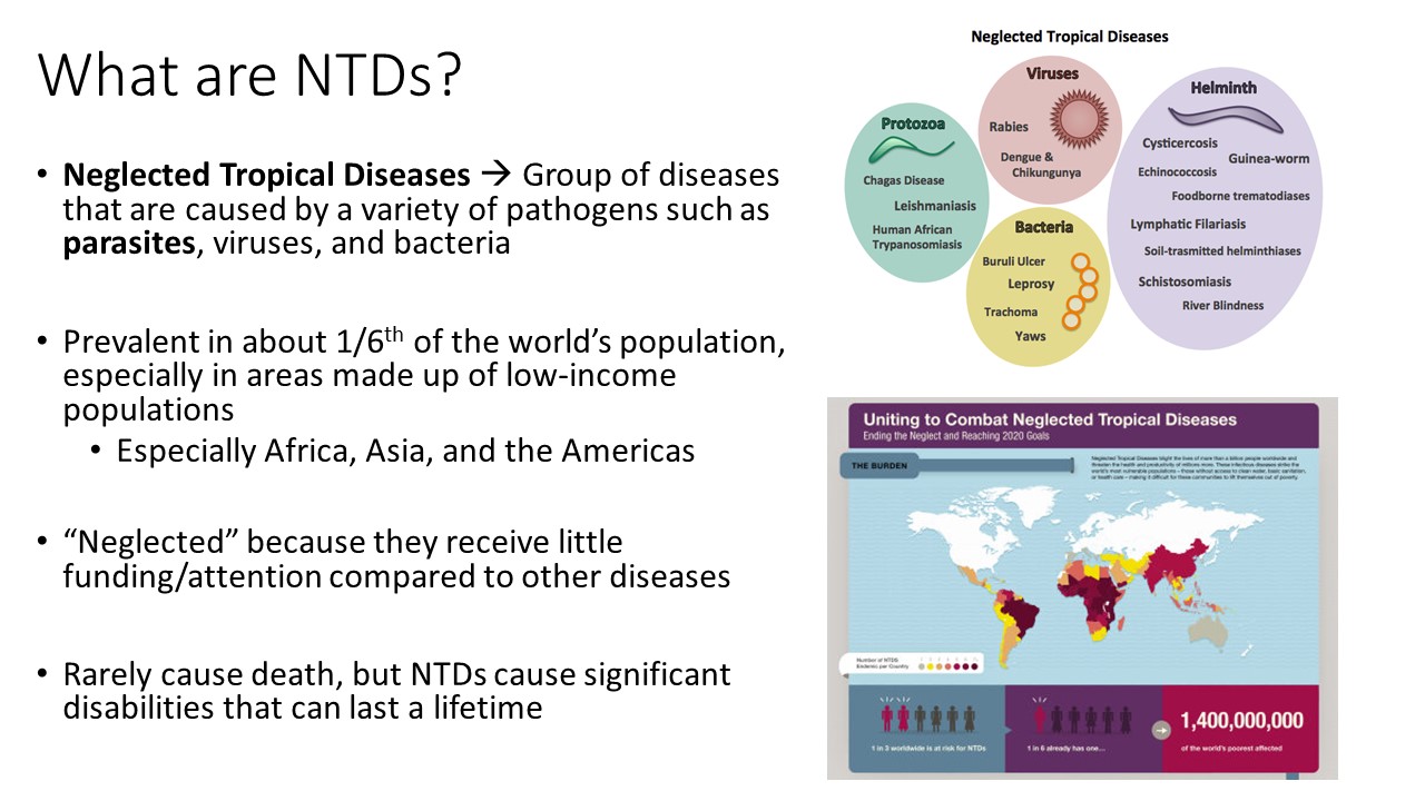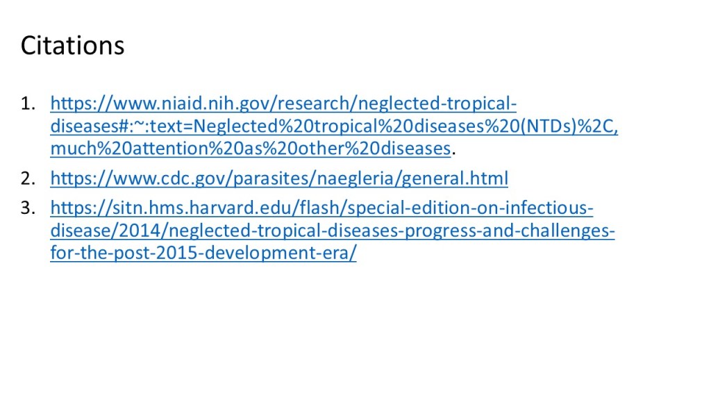 The following project was created by Josh Berthiaume, a student from the University of New Hampshire majoring in B.S. in Biomedical Sciences with a concentration in Medical Microbiology. Josh’s project explores the use of multiple social media platforms to promote NTDs awareness. Josh created a, educational TikTok account and a YouTube channel that explain various NTDs. The first entries in these accounts discuss the transmission, pathogenesis, treatment, and diagnosis of amebic meningoencephalitis, toxoplasmosis, and babesiosis.